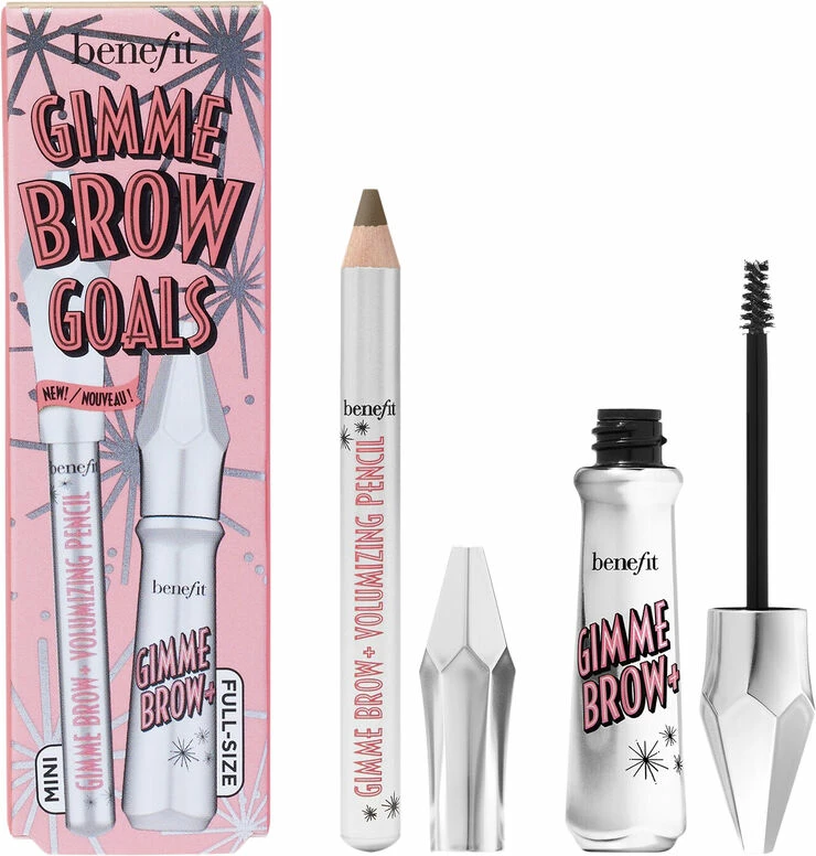 Brow goals achieved!<br><br>For de mest fyldige bryn, du nogensinde har haft! Omfatter fan-favoritten Gimme Brow+ bryn-gel i fuld størrelse for at give volumen, tæmme og farve brynene og en mini af den nye Gimme Brow+ Volumizing Pencil for at give volumen, udfylde og definere brynene. Dette er den første brynblyant med fiber OG pulver, der klæber fast på huden og hårene for struktur og fylde med naturligt udseende, der holder i 12 timer*. Brug dem sammen for EKSTRA brynvolumen.<br><br>*Instrumental test på 20 deltagere<br><br><br><br>Dette sæt omfatter:<br><br>- Gimme Brow+ volumengivende fibergel til bryn, i nuance 3 eller 4 i fuld størrelse<br><br>- Gimme Brow+ Volumizing Pencil volumengivende fiber-brynblyant i nuance 3 eller 4 i mini<br><br><br><br>Skønhedstip:<br><br>Spids Gimme Brow+ Volumizing Pencil med Benefits blyantsspidser All-Purpose Sharpener (sælges separat)