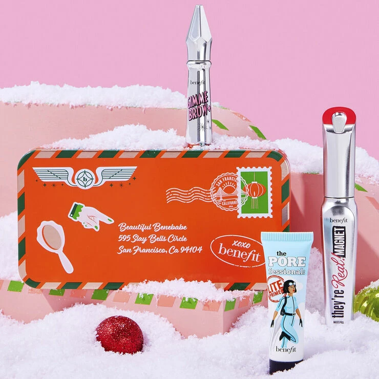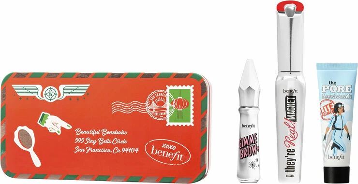 Seal a happy holiday look!<br>Sæt dit stempel på julen med vores skønhedsfavoritter! Træk vipperne ud til EKSTREME længder med en Theyre Real! Magnet mascara i fuld størrelse. Giv brynene fylde, farve og kontrol med en Gimme Brow+ gel i fuld størrelse. Udvisk og forfin øjeblikkeligt porernes udseende i 12 timer med en The POREfessional Lite Primer i en mini, der passer lige i lommen. <br>Kommer i en genanvendelig og gemmeværdig dåse med særlige juleklistermærker indeni! <br>*instrumental test på 21 deltagere <br><br>Dette sæt omfatter: <br>- Theyre Real! Magnet kraftigt løftende og forlængende mascara i Supercharged Black i fuld størrelse<br>- Gimme Brow+ volumengivende fibergel til brynene, nuance 3 i fuld størrelse<br>- The POREfessional Lite Primer ultralet ansigtsprimer til at gøre porerne mindre synlige, i mini<br><br>Skønhedstip:<br>Tilføj et strejf Hoola mat bronzer (sælges separat) for at fuldende et hot julelook