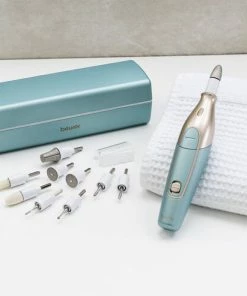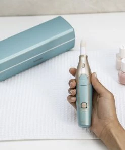 Dette genopladelige manicure/pedicure-sæt er perfekt til dig, der elsker at pleje dine hænder og fødder. Produktet er uden ledning, har et skarpt LED-lys og et ergonomisk design til at forhindre glidning under behandling af dine negle. Du kan justere hastigheden på tre forskellige niveauer med hhv. 3200, 3800 og 4400 o/m (±15%), og den har højre- og venstrerotation. Du får følgende ti ting med til dit produkt: 1. Safirkegle – velegnet til at fjerne tør hud og blødgøre hård hud på sål og hæl. 2. Fin safirdisk til filing og behandling af neglene. 3. Grov safirdisk til hurtig afkortelse af selv meget tykke negle. 4. Krystalfil til hurtig fjernelse af meget tyk og ru hud under fødderne. 5. Flammeformet fræser til løsning af indgroede negle. 6. Cylindrisk sliber til misformede og tykke tånegleoverflader. 7. Filtkegle renser og polerer overfladerne og siderne af neglene efter filing. 8. Rund safirfræser til forsigtig fjernelse af ligtorne. 9. Negleklipper til løsning af indgroede negle eller afskæring af døde negledele. 10. Safir callus fil til fjernelse af callus på fodsåler og hæl. En opladning på tre timer giver dig behandlingstid med produktet i to timer. Der medfølger et praktisk opladnings- og opbevaringsetui, en beskyttelseshætte til neglestøv samt et mikro USB-kabel. Du får tre års garanti på produktet.