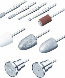 Skab de perfekte rammer for at give dig sig en professionel manicure og pedicure behandling. Denne professionelle manicure/pedicure station indeholder 9 forskellige, højkvalitets safirbits og 30 engangs sandpapirssliberere: 1. Fin safirkegle – til fjernelse af død hud på fødder og hæle samt til at forme neglene.<br>2. Grov safirkegle – til fjernelse af hård hud.<br>3. Filtkegle – renser og polerer overfladen og siderne på neglene efter filing.<br>4. Cylindrisk sliber – til misformede og tykke tånegleoverflader.<br>5. Fin safirdisk – til filing og behandling af neglene.<br>6. Grov safirdisk – til hurtig afkortelse af selv meget tykke negle.<br>7. Flamme-formet fræser – til løsning af indgroede negle.<br>8. Nåle-formet fræser – til løsning af indgroede negle eller afskæring af døde negledele.<br>9. Rund safir fræser – til forsigtig fjernelse af ligtorne.<br>10. 30 engangs sandpapirsliber til engangsslibning af tør hud og negle. Hastigheden kan varies trinløst og spænder imellem 5000 rpm – 20.000 rpm.