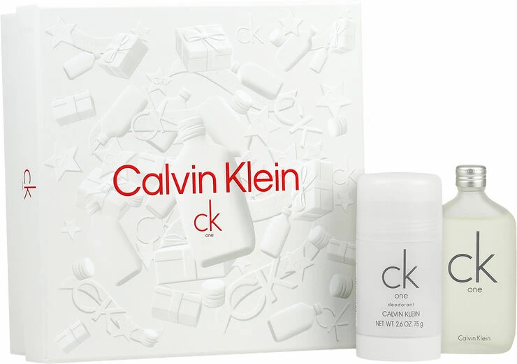 Oplev den ikoniske duft Ck One i vores lækre gaveæske. <br><br>Indhold:<br>- CK ONE Eau de Toilette (50 ml).<br>- Deodorant Stick (75 ml).<br><br>En let, forfriskende og cool duft. Noten af citrus gør den casual og generøs at bruge. Viol, rose og orange er noter som gør til kende i ONE. Den toppes med en delikat kombination af blandt andet kardemomme og lavendel.