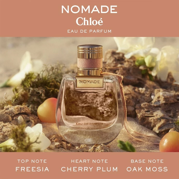 Chloé Nomade Eau de Parfum er selve essensen af den eventyrlystne kvinde, der indtager verdenen. Chloé-kvinden rummer en fantastisk frihedstrang og en umiskendelig naturlig elegance. Hun er selvsikker, inspirerende og blomstrer i sine oplevelser og møder. Hun ved, hvem hun er, og hviler i sig selv. Denne indre styrke gør hende rummelig og Ã¥ben over for forskellighed. Chloé Nomade Perfume er en blanding af blødhed og styrke: Facetterne i denne blomsterduft svæver ligesom vinden. Den intense, mineralske duft af egemos indhylles i kirsebærblommens frodige sødme og fresiaens pudrede friskhed. Topnoter: Fresia Hjertenoter: Kirsebærblomme Basenoter: Egemos 20 ml. til tasken, rejsen, gaven…