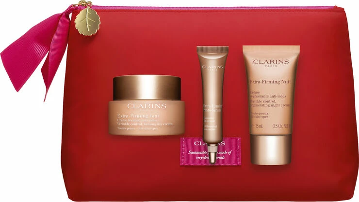 Extra Firming gaveæsken henvender sig til en hud, der har behov for en opstrammende anti-age effekt.<br><br>Indhold: <br>- Extra-Firming Day Cream all skin types 50 ml. (full-size)<br>- Extra-Firming Night Cream all skin types 15 ml<br>- Extra-Firming Serum 10 ml<br><br><br>Extra-Firming Day Cream:<br>Opstrammende anti-age dagcreme med SPF15 til normal hud særligt velegnet til kvinder i 40'erne. Tilfører fugt og komfort og bevarer hudens spændstighed. Modvirker alderspletter og giver en strålende glød. Sådan bruges den: Fordeles hver morgen over omhyggeligt renset hud i ansigtet og på hals.<br><br><br>Extra-Firming Night Cream:<br>Opstrammende anti-age natcreme til normal/tør hud særligt velegnet til kvinder i 40'erne. Tilfører fugt og komfort og løfter og mindsker rynker. Modvirker alderspletter og giver strålende glød. <br><br><br>Extra-Firming Serum:<br>En udglattende gelé-serum der løfter og opstrammer huden. Efterlader huden fast og spændstig. Den opstrammende effekt mindsker synligt rynker og mimiske linjer.