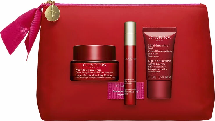 Indhold:<br>- Super Restorative Day Cream all skin types 50 ml.(full-size) <br>- Super Restorative Night Cream all skin types 15 ml. <br>- Super Restorative Remodeling 10 ml. <br><br><br> Super Restorative Day Cream:<br>Dagcreme, der arbejder med de aldersrelaterede hormonelle forandringer i huden. Giver næring og fylde, udglatter og løfter, og huden får fornyet glød og udstråling.<br><br>Super Restorative Night Cream :<br>Natcreme med en skøn, cremet konsistens, der reducerer de skadelige virkninger af aldersrelaterede hormonelle forandringer i huden. Huden bliver øjeblikkeligt udglattet, mere jævn og løftet, så du kan vågne med en mere strålende hud.
