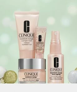 Fire bestsellers Moisture Surge fra Clinique musthaves, der fugter og plejer din hud igennem hele dagen. Sættet kan både bruges i din daglige hudpleje rutine, men også hvis du eller en veninde skal forkæles ekstra. Sættet er perfekt som en gave.<br><br><br>Produkterne er beregnet til alle hudtyper, produkterne er uden parfume. <br><br>Fordele ved produkterne: <br><br><br>- Hold din hud plejet og fugtet. <br>- Moisture Surge 100H Auto-Replenishing Hydrator bekæmper hverdagens udtørringer. Trænger ned i hudens overflade og giver dyb, langvarig fugt.<br><br>- Moisture Surge Overnight Mask fugter i dybden, mens du sover. <br><br>- Moisture Surge Eye 96-Hour Hydro-Filler Concentrate genopfylder øjeblikkeligt huden omkring øjnene og opstrammer den. <br><br>- Et sprøjt Moisture Surge Face Spray Thirsty Skin Relief genopfylder hudens fugtniveau når som helst.<br><br><br><br> Indhold: <br><br><br>- Moisture Surge 100H Auto-Replenishing Hydrator, 30 ml.<br><br>- Moisture Surge Overnight Mask, 30 ml.<br><br>- Moisture Surge Eye 96-Hour Hydro-Filler Concentrate, 5 ml.<br><br>- Moisture Surge Face Spray Thirsty Skin Relief, 30 ml.<br> <br><br>Sættet har en værdi af 442 kr.