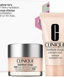 Fire bestsellers Moisture Surge fra Clinique musthaves, der fugter og plejer din hud igennem hele dagen. Sættet kan både bruges i din daglige hudpleje rutine, men også hvis du eller en veninde skal forkæles ekstra. Sættet er perfekt som en gave.<br><br><br>Produkterne er beregnet til alle hudtyper, produkterne er uden parfume. <br><br>Fordele ved produkterne: <br><br><br>- Hold din hud plejet og fugtet. <br>- Moisture Surge 100H Auto-Replenishing Hydrator bekæmper hverdagens udtørringer. Trænger ned i hudens overflade og giver dyb, langvarig fugt.<br><br>- Moisture Surge Overnight Mask fugter i dybden, mens du sover. <br><br>- Moisture Surge Eye 96-Hour Hydro-Filler Concentrate genopfylder øjeblikkeligt huden omkring øjnene og opstrammer den. <br><br>- Et sprøjt Moisture Surge Face Spray Thirsty Skin Relief genopfylder hudens fugtniveau når som helst.<br><br><br><br> Indhold: <br><br><br>- Moisture Surge 100H Auto-Replenishing Hydrator, 30 ml.<br><br>- Moisture Surge Overnight Mask, 30 ml.<br><br>- Moisture Surge Eye 96-Hour Hydro-Filler Concentrate, 5 ml.<br><br>- Moisture Surge Face Spray Thirsty Skin Relief, 30 ml.<br> <br><br>Sættet har en værdi af 442 kr.