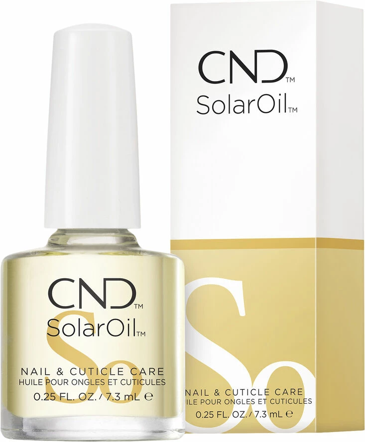 Solaroil fra CND er en prisbelønnet neglebåndsolie, som er tilført jojoba olie og E-vitamin. Gentagende brug af olien skubber næringsstofferne dybt ind, skaber stærkere, sundere negle samt fugter neglebåndene.