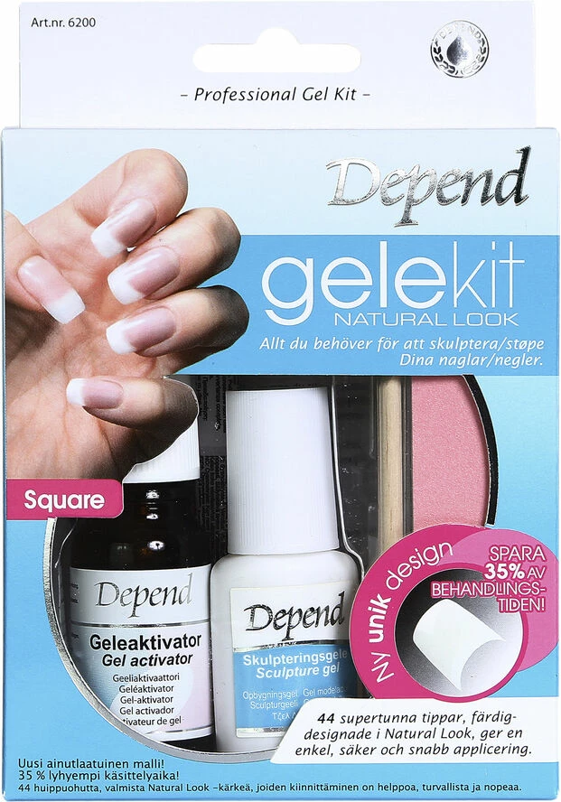 Et komplet gel-sæt til opbygning af gelénegle. Med enkle trin guides du frem til smukke negle.<br>Anvendelse:<br>- Rens dine hænder og negle.<br><br>- Fil neglene.<br><br>- Brug forsigtigt overflade 1 på poleringsfilen på neglens overflade.<br><br>- Det er vigtigt, at dine gelénegle har en tip med den rigtige pasform til dine negle. Påfør tipperne med den medfølgende lim.<br><br>- Tilpas kanten med en neglefil ved at file på den fineste overflade af neglefilen.<br><br>- Påfør et tyndt lag af Depend skulpteringsgel og spray derefter med Depend Aktivator. Spray med en afstand på cirka 30 centimer til neglen. Når det er tørret, skal du gentage begge trin to gange mere. I alt tre tynde påføringer med skulpteringsgel og aktivator.<br><br>- Afslut behandlingen med at polere neglene med poleringsfilen. Dine gelénegle er nu færdige!