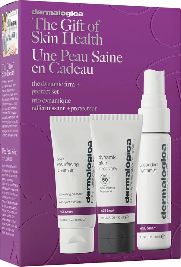 Forkæl dig selv, eller en du holder af med denne gaveæske fra Dermalogica. <br><br>Indhold: <br><br>- Skin Resurfacing Cleanser, 15 ml. <br><br>- Dynamic Skin Recovery, 12 ml.<br><br>- Antioxidant Hydramist, 30 ml. <br><br>Skin Resurfacing Cleanser: Eksfolierende renseprodukt med mælkesyre der markant udglatter hud med ældningstegn. Anvendelse: Skum en lille smule renseprodukt op i dine hænder og påfør det på fugtet hud i ansigt og på hals med lette opadgående strøg i mindst 30 sekunder, undgå øjenområdet. <br><br><br>Dynamic Skin Recovery: Den mediumlette og blødgørende dagcreme med SPF50 øger hudens fasthed, elasticitet og fugtindhold og beskytter samtidig mod de primære årsager til ældning i huden. <br><br> Antioxidant Hydramist: Fugtende spray med øjeblikkelig opstrammende virkning, som beskytter mod de nedbrydende frie radikaler.