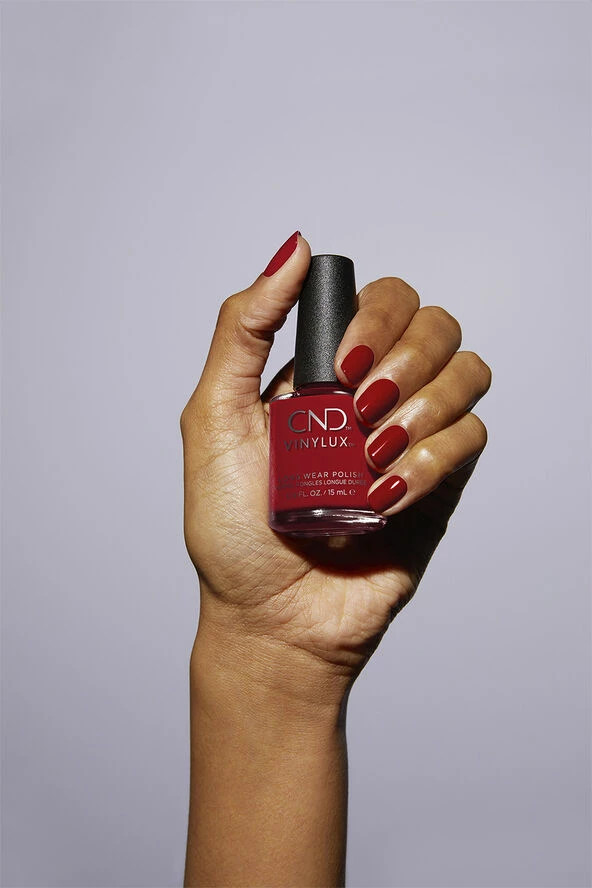 CND VINYLUX lak er den første langtidsholdbare neglelak, der helt unikt samtidig plejer og styrker neglene og modvirker udtørring. Indbygget complex med E-vitamin, jojobaolie og styrkende keratin. – Kun 8,5 min. tørretid – Langtidsholdbar neglelak med indbygget base coat – Smuk gel højglans – Styrkende og plejende ingredienser for stærke og sunde negle Aftages nemt med en acetonebaseret neglelakfjerner eller med den ekstra hurtige CND Offly Fast. Rystes i 60 sekunder før brug og påføres i to tynde lag.