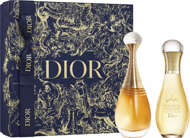 En betagende duo i et fantastisk etui: Stjernerne på denne J'adore Eau de Parfum Infinissime-duft skaber en fantastisk himmelsk harmoni mellem drømme og magi. Den vidunderlige udsmykning er designet af kunstneren Pietro Ruffo for Dior og illustrerer en nattehimmel. Den er en generøs og gennemtænkt gaveidé.<br><br>Duftsættet består af:<br>- J'adore eau de Parfum Infinissime, 50 ml. J'adore-bouquetet folder sig ud med overdødighed i denne strålende sensuelle eau de parfum. Citrus-, blomster- og træagtige duftnoter.<br>- J'adore Huile Divine, 75 ml. En luftig og sensuel tør olie, der frigiver noterne af J'adore på huden.