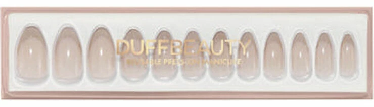 Opnå perfekte salon-lignende negle på få minutter! DUFFBEAUTYs nye Reusable Press on negle kommer i fem forskellige former og design. I æsken medfølger 24 negle i 12 forskellige størrelser, en neglebuffer/neglefilm og en DUFF langtidsholdbar med skånsomme neglelim. Almond = Medium længde