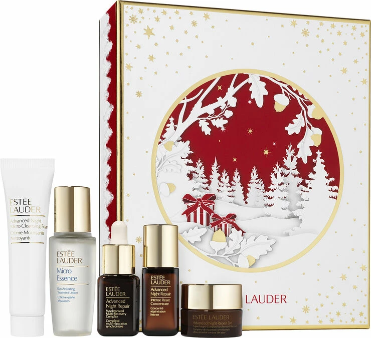 Opdag vores Advanced Night Repair-produkter, der mindsker linjer og rynker markant. Samt de genaktiverer din glød. Gaveæsken indeholder nogle af vores favoritter fra Estée Lauder, og er perfekt både til dig selv eller som gave. <br><br><br>Indhold: <br>• Micro Essence Treatment Lotion with Bio-Ferment, rejsestørrelse (15 ml)<br>• Advanced Night Repair Synchronized Multi-Recovery Complex, rejsestørrelse (7 ml)<br>• Advanced Night Repair Intense Reset Concentrate, rejsestørrelse (5 ml)<br>• Advanced Night Micro Cleansing Foam, rejsestørrelse (7 ml)<br>• New Advanced Night Repair Eye Supercharged Gel-Creme Synchronized Multi-Recovery, rejsestørrelse (5 ml)