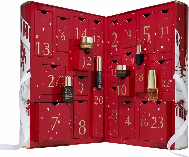 Forkæl dig selv hver dag i julen. Indeholder vores bedst sælgende hudpleje, makeupfavoritter og meget mere. <br><br>TIP:Genbrug denne æske.<br> <br>Denne limited edition-kollektion indeholder 24 deluxe skønhedsprodukter i rejsestørrelse. <br><br>• Advanced Night Repair Synchronized Multi-Recovery Complex, rejsestørrelse (15 ml)<br>• Advanced Night Repair Eye Supercharged Gel-Creme Synchronized Multi-Recovery, rejsestørrelse (5 ml)<br>• Advanced Night Repair Intense Reset Concentrate, rejsestørrelse (5 ml)<br>• Advanced Night Repair Eye Concentrate Matrix Synchronized Multi-Recovery Complex, rejsestørrelse (5 ml)<br>• Perfectly Clean Multi-Action Foam Cleanser/Mask, rejsestørrelse (15 ml)<br>• Perfectionist Pro Rapid Brightening Treatment with Fermentᵌ + Vitamin C, rejsestørrelse (15 ml)<br>• Revitalizing Supreme+ Youth Power Creme, rejsestørrelse (7 ml)<br>• Revitalizing Supreme Night Intensive Restorative Creme, rejsestørrelse (7 ml)<br>• Revitalizing Supreme+ Youth Power Eye Balm, rejsestørrelse (5 ml)<br>• Micro Essence Skin Activating Treatment Lotion with Bio-Ferment, rejsestørrelse (30 ml)<br>• Micro Essence Skin Activating Treatment Lotion Fresh with Sakura Ferment, rejsestørrelse (30 ml)<br>• Soft Clean Infusion Hydrating Essence Lotion Amino Acid + Waterlily, rejsestørrelse (30 ml)<br>• Bronze Goddess Powder Bronzer in 02 Medium, rejsestørrelse (5,4 g)<br>• Pure Color Envy Lip Repair Potion, rejsestørrelse (4,6 ml)<br>• Pure Color Envy Color Replenish Lip Balm, rejsestørrelse (1,6 g)<br>• Pure Color Envy Sculpting Lipstick in 420 Rebellious Rose, rejsestørrelse (1,2 g)<br>• Pure Color Envy Sculpting Lipstick in 333 Persuasive, rejsestørrelse(1,2 g)<br>• Pure Color Envy Kissable Lip Shine in Tender Trap, rejsestørrelse (4,6 ml)<br>• Double Wear Stay-in-Place Lip Pencil in 07 Red, rejsestørrelse (8 g)<br>• Double Wear Stay-in-Place Eye Pencil in 01 Onyx, rejsestørrelse (8 g)<br>• Futurist Aqua Brilliance™ Watery Glow Primer, rejsestørrelse (15 ml) <br>• Sumptuous Extreme Lash Multiplying Volume Mascara in 01 Extreme Black, rejsestørrelse (2,8 ml)<br>• Beautiful Magnolia Eau de Parfum Spray, rejsestørrelse (4 ml)<br><br>Find din nye favorit hver dag. Nyd forventningen. Nyd luksussen.