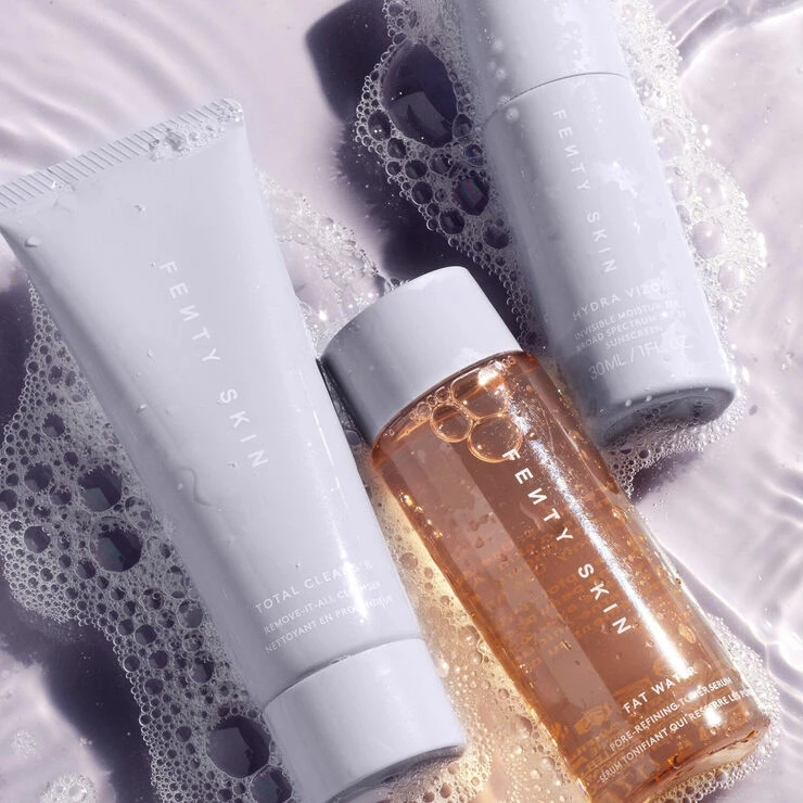 Rihanna er klar med sin Starter hudplejerutine: Denne klinisk dokumenterede 3-trins hudplejerutine er designet til at fungere bedre sammen. Lysner huden, behandler udseendet af porer og mørke pletter, og fugter samt beskytter huden. <br><br><br><br>REMOVE + CLEANSE: <br> <br>Total Cleans'r (45 ml) giver dig den lækre dybderens, du fortjener. Fenty Skins universelle cremede rensemiddel fjerner snavs, olie og langtidsholdbar makeup uden at fjerne eller udtørre huden. Barbados-kirsebær- og kokosnødderensere giver næring og behandler huden rigtigt. <br><br><br><br>TONE + TREAT: <br><br>Fat Water (50 ml) er en universel toner-serum-kombination, der fjerner porer, forbedrer udseendet af mørke pletter, lysner, udglatter og bekæmper glans – alt sammen uden at udtørre huden. Rihanna kalder produktet""fat"" Water på grund af dets unikke tykke konsistens, der absorberes øjeblikkeligt. <br><br><br><br>PROTECT + HYDRATE: <br><br>Hydra Vizor (30 ml) er en 2-i-1 solcreme og fugtighedscreme, der ligger et let og usynlig lag på alle hudtoner. Desuden bekæmper denne creme dehydrering, misfarvning, mørke pletter og komplimenterer makeup – ingen flashback. <br><br><br><br><br>Indeholder nu også en prøve af Butta Drop Whipped Oil Body Cream (8 ml).