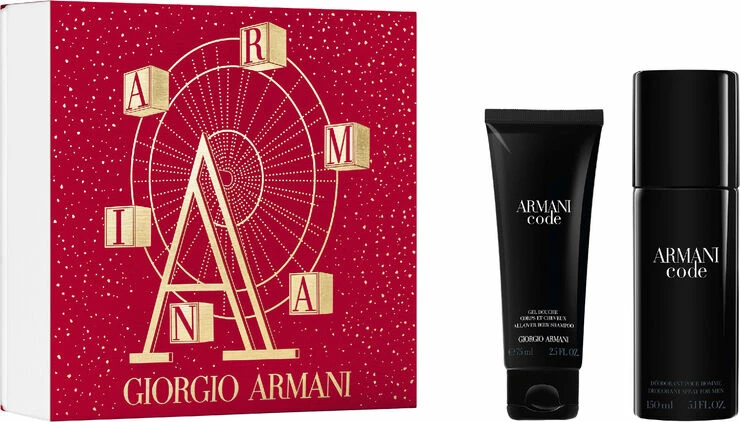 Den perfekte julegave til manden, der elsker selvpleje. <br><br>Indhold:<br>- Deodorant Spray (150 ml)<br>- Showergel (75 ml)<br><br>Armani Code Deodorant Spray er en effektiv deodorant til mænd, der giver en øjeblikkelig følelse af velvære og friskhed, der effektivt varer ved hele dagen. Deodoranten er karakteriseret af den elegante, kraftfulde og forførende Armani Code duft. Duften er moderne og tidløs på en gang. Superelegant og sensuel på en sofistikeret underspillet måde. En karakterfuld, personlig duft, der udvikler sig helt individuelt fra mand til mand. Og bliver et med ham – som hans signatur.