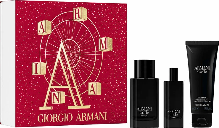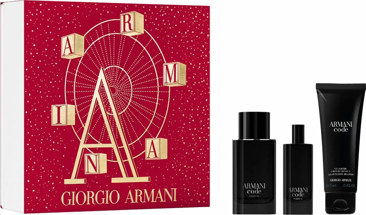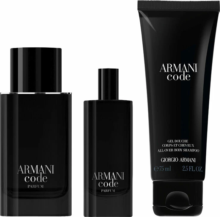Den perfekte julegave til ham, der både elsker dufte og hudpleje. Gaveæsken indeholder både en showergel, og to parfumer. Den ene i en rejsestrørrelse – perfekt til at have med på farten. <br><br>Indhold:<br>- Eau De Parfum 75 ml.<br>- Eau De Parfum 15 ml.<br>- Showergel 75 ml. <br><br><br>Armani Code PARFUM er stærk og alligevel følsom og genopfinder signaturen fra den originale Armani Code-duft. Armani Code PARFUM bevarer sin træagtige aromatiske og sensuelle identitet og er indbegrebet af Armani Code. Det kommer til udtryk i duftens aromatiske topnoter og kraftfulde maskuline bundnoter, hvor hjertet nu er tilført en forstærket følsomhed. Armani Code PARFUM, den nye kraftfulde og samtidig følsomme duftsignatur.