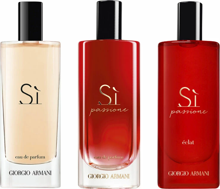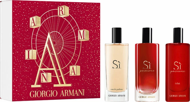 Den perfekte, velduftende gave til en kvinde du holder af. <br><br>Denne gaveæske indeholder:<br><br>- Sí Eau de Parfum 15 ml.<br>- Sí Passione Eau de Parfum 15 ml. <br>- Sí Passione éclat 15 ml. <br><br>Sí Eau de Parfum:<br>Giorgio Armani Sì Eau de Parfum. Den er på samme tid chik og frodig samt betager sanserne. Det fremragende og elegante duftresultat spiller på følelserne og er tro mod Giorgio Armanis couture-ånd.<br>Duften til kvinder kombinerer tre noter: solbærnektar, moderne chypre og musk fra lyst træ med strejf af fresia- og majroseduft. Denne parfume er skabt til den moderne kvinde, der er stærk og feminin, sofistikeret samt karismatisk. Hun er essensen af den chikke italienske elegance og stil.<br><br><br>Sí Passione Eau de Parfum:<br>Sí Passione gentager de karakteristiske noter man også finder i den klassiske signatur duft Sì:- Jungle Essence nektarer med solbær essens, kombineret med en spludrende, frisk pære. Men i Sì Passione blandes også intens vanilje med roseblomst, heliotrope og jasmin for at skabe en sensuel, frugtig og blomstrende duft, der reflekterer den delikate men alligevel stærke femininitet. I hjertet af Sì Passione kan man finde cedertræ og det moderne Orcanox med noter af amber og træ, som tilføjer den modenhed og karakter som Sì Passione kvinden udstråler.<br><br> Sí Passione éclat:<br>Giorgio Armani Sì Passione Éclat EDP er en fortryllende og særdeles lidenskabelig parfume, der kan bringe selv dine mest hemmelighedsfulde sider frem. Denne rige duft hører til blomsterfamilien, og vækker dine sanser til live i det øjeblik du tager den på. Det vil føles som ren lykke og glæde, der regner ned over din hud. Så er du en uafhængig og passioneret kvinde, der føler sig modigere end de fleste, og som ved hvordan hun kommer frem i livet, så er denne parfume en perfekt allieret.