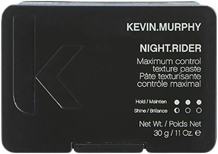 NIGHT.RIDER fra KEVIN.MURPHY er en mat struktur-voks, som giver kraftigt hold og en rå, mat struktur til kort hår og/eller pjuskede frisurer. Indeholder Bivoks som gør det nemt at forme håret og giver det hold med fugtbevarende egenskaber, Grapefrugtekstrakt som fremmer hårvæksten og cellegendannelse, og Tangerinolie som forsegler skællaget og beskytter mod stress.