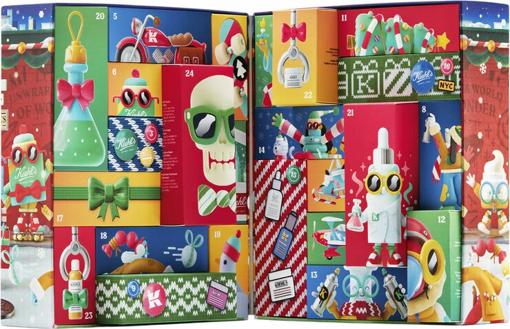 Kom i julestemning med Kiehl's julekalender og forkæl både krop og sind med 24 fantastiske hud- og hårplejende overraskelser. I år er julekalenderen designet af Made By Radio – et Cape Town/London-baseret studio, som skaber fængslende designs, der inkorporerer energiske farver og skæve, livlige elementer.<br><br>Julekalenderen indeholder:<br>- 30ml Creme de Corps<br>- 30ml Ultra Facial Cleanser<br>- 28ml Ultra Facial Cream<br>- 40ml Ultra Facial Toner<br>- 7ml Super Multi-Corrective Cream<br>- 14ml Rare Earth Deep Pore Cleansing Mask<br>- 14ml Creamy Eye Treatment with Avocado<br>- 75ml Calendula Herbal-Extract Toner<br>- 4ml Daily Reviving Concentrate<br>- 7ml Calendula Serum-Infused Water Cream<br>- 4ml Midnight Recovery Concentrate<br>- 30ml Ultimate Strength Hand Salve<br>- 7ml Ultra Facial Oil-Free Gel Cream<br>- 30ml Body Fuel All-in-One Energizing Wash<br>- 15ml Facial Fuel Energizing Scrub<br>- 15ml Powerful-Strength Line-Reducing Concentrate<br>- 14ml Midnight Recovery Omega-Rich Cloud Cream<br>- 40ml Midnight Recovery Botanical Cleansing Oil<br>- 15ml Lip Balm #1<br>- 3ml Super Multi-Corrective Eye Zone Treatment<br>- 75ml Calendula Deep Cleansing Foaming Face Wash<br>- 3ml Powerful-Strength Line-Reducing & Dark Circle-Diminishing Vitamin C Eye Serum<br>- 10ml Retinol Skin-Renewing Daily Micro-Dose Serum<br>- 5ml Avocado Nourishing Hydration Mask