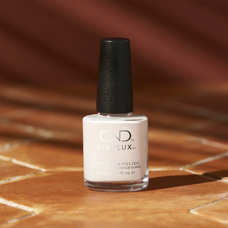 CND VINYLUX lakk er den første langvarige lakken som gir næring til og styrker neglene og forhindrer uttørking. Innebygd kompleks med vitamin E, jojobaolje og styrke keratin. – Bare 8,5 min. tørketid – Langvarig neglelakk med innebygd underlag – Vakker gel høyglans – Styrke og pleie ingredienser for sterke og sunne negler Fjernes enkelt med en acetonbasert neglelakkfjerner eller med den ekstra raske CND Offly Fast . Rist i 60 sekunder før bruk og påfør i to tynne lag.