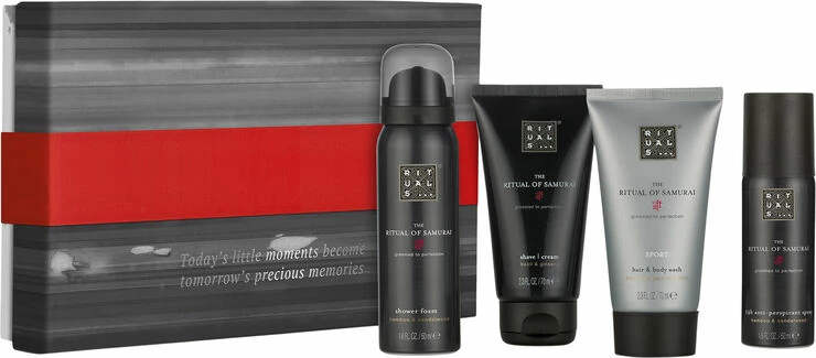 Dette vidunderlige gavesæt er den perfekte gave til en ven eller et familiemedlem, eller til at forkæle dig selv med! Indeholder The Ritual of Samurai Anti-Perspirant Spray 50ml, The Ritual of Samurai Hair & Body Wash 70ml, The Ritual of Samurai Shave Cream 70ml, The Ritual of Samurai Foaming Shower Gel 50ml