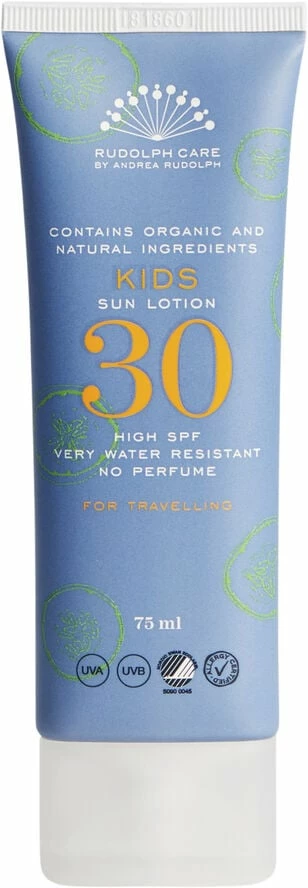 En vandafvisende sollotion, der nænsomt og effektivt beskytter dit barns hud mod solens skadelige UVA- og UVB-stråler. Kids Sun Lotion er 100 % fri for parfume. Rig på fugtgivende agurkekstrakt, nærende rapsolie, beroligende kamille og kølende aloe vera. Cremen har en fin og let konsistens, der gør den nem at smøre ud. Kids Sun Lotion trænger ind i huden med det samme. Den fedter ikke, klistrer ikke, hvidter ikke.<br> Smør dit barn ind 30 min. før, I skal ud i solen. Vær generøs med mængden – brug en håndfuld Kids Sun Lotion til hele kroppen. Vi anbefaler, at du smører dit barn ind to gange umiddelbart efter hinanden. Så undgår du at misse et spot, og du er sikker på, at dit barn får nok solcreme på. Kom et nyt lag solcreme på med jævne mellemrum – og altid efter dit barn har været i vandet.