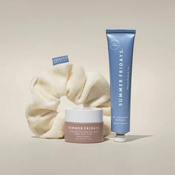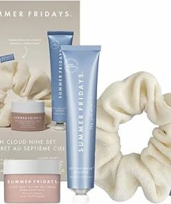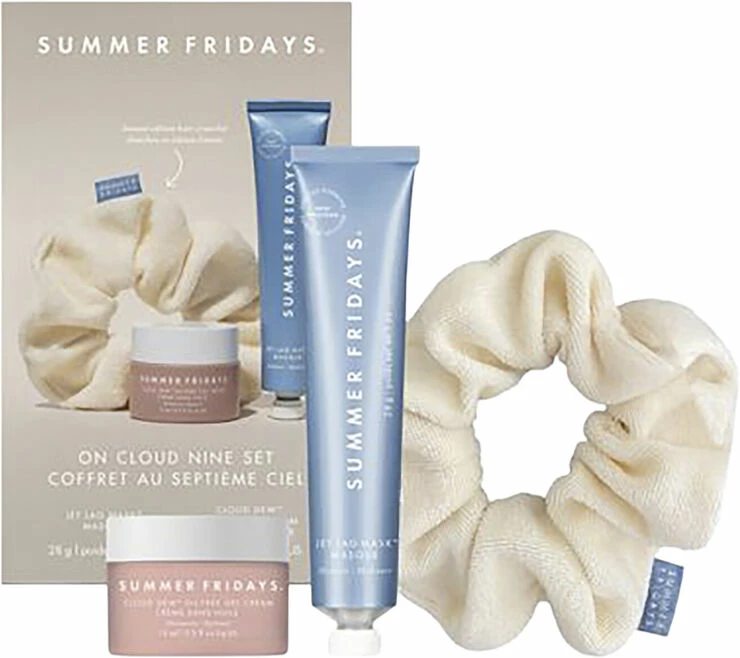 Sættet indeholder:<br>-Mini Jet Lag Mask – 28 g<br>-Mini Cloud Dew Oil-Free Gel Cream – 15 ml<br>-Terry Cloth Scrunchie<br><br><br>Mød vores Limited Edition On Cloud Nine-sæt, der indeholder vores bedst sælgende power duo – Jet Lag Mask og Cloud Dew Oil-Free Gel Cream Moisturizer. Sættet indeholder også en begrænset udgave af en Terry Cloth Scrunchie.<br><br>Jet Lag Mask:<br>En travl hverdag kan efterlade huden stresset, træt og tørstig. Vores forbedrede, parfumefri formel, der bruges som natmaske, fugtighedscreme om dagen eller som hudbeskyttelse under flyrejsen, hjælper med at nære, fugte og berolige med niacinamid, glycerin, hyaluronsyre og antioxidanter, så huden ser fornyet og strålende ud og er klar til alt.<br><br>Cloud Dew oliefri gelcreme:<br>Denne ultra lette gelcreme tilfører tørstig hud tre typer hyaluronsyre for non-stop, hudopbyggende hydrering. Dens oliefrie formel er også fyldt med ceramider, mineraler og aminosyrer for at hjælpe med at booste hudens fugtbarriere – plus superpotente antioxidanter og lysnende ananasenzymer, der hjælper med at forbedre hudens tone og tekstur synligt. Glid på over ren hud for et frisk, dugfrisk look eller under makeup for en glat finish.