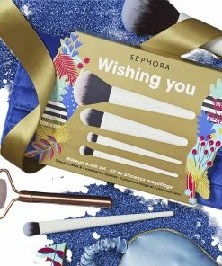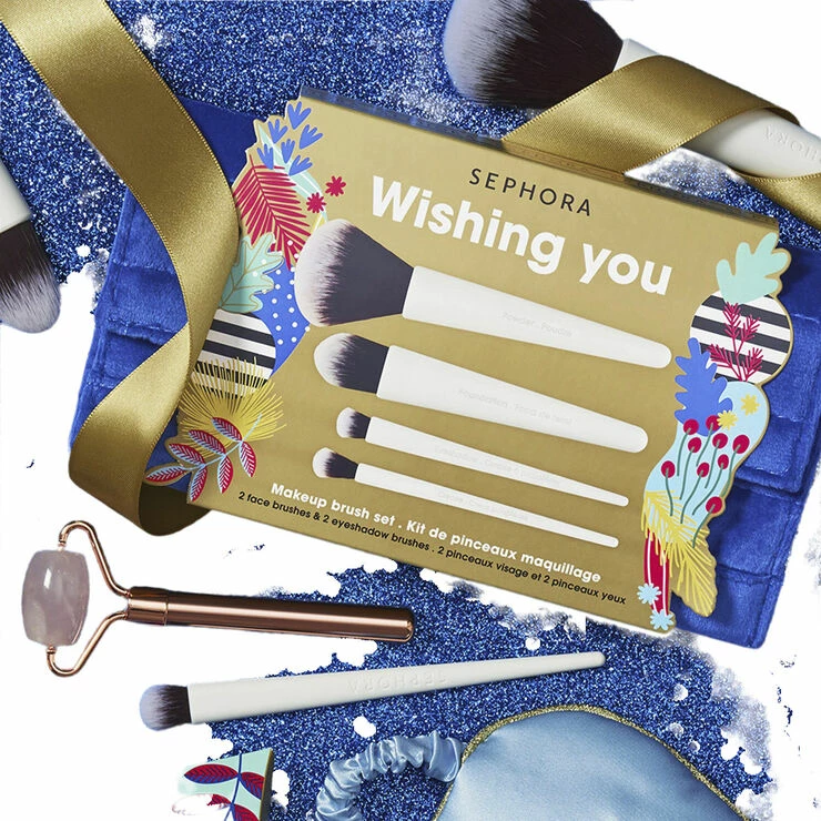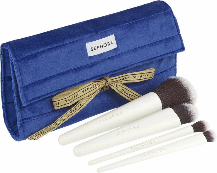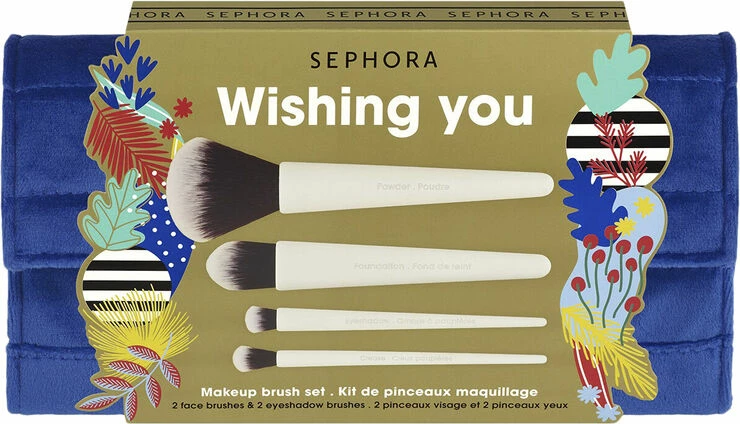 Sæt med veganske makeupbørster, to ansigtsbørster og to øjenbørster i en rejsetaske, der er lige så smuk som den er praktisk. <br><br>En helt perfekt julegave til makeup- elskeren.