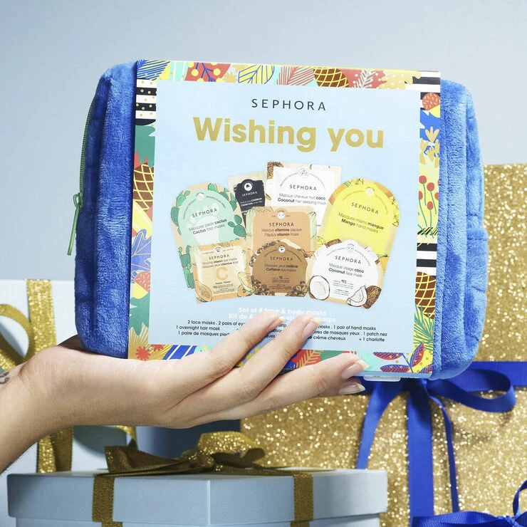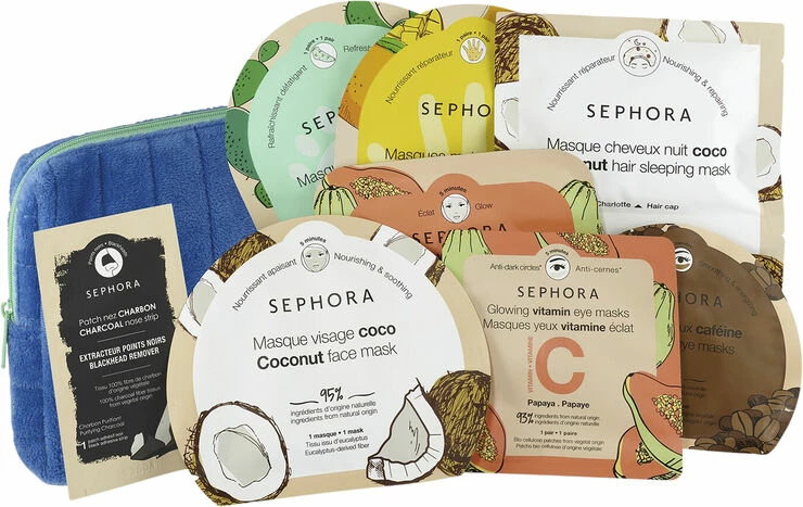 Et sæt med otte ansigts- og kropsmasker i en genanvendelig fløjlspose til at forkæle dig selv eller en du holder af fra top til tå.<br><br>Face and body masks: otte essentielle elementer til at pleje din hud.