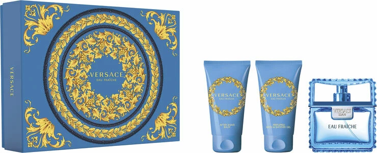 Den perfekte gave til ham der skal forkæles med hudpleje og duft.<br><br>Indhold: <br>- Versace Eau Fraiche Homme Eau De Toilette 50 ML.<br>- Versace Eau Fraiche Homme Bath&Show 50 ML.<br>- Versace Eau Fraiche Homme AS Balm 50 ML. <br><br><br>Versace Eau Fraiche Homme Eau De <br>Versace Man Eau Fraiche er til manden, hvis styrke er hans sjæl. – Til ham, der føler sig fri og som forstår at nyde livet en mundfuld ad gangen. Versace Man Eau Fraiche er en ny harmoni, hvor de mest klassiske ingredienser i herreduft er opfrisket med nye og ualmindelige noter – en overraskende frisk duft. Det første indtryk er Carambola (stjernefrugt) med sin boblende og ukonventionelle personlighed, der øjeblikkeligt skaber en kontrast til de mere traditionelle noter af citron og nobelt rosentræ. Så folder hjertenoten sig ud med en udpræget karakter af cedertræsblade, der understreger de vibrerende noter af estragon og mandig salvie. Slutteligt efterlades et dyrebart duftspor af ahorntræ, beroligende amber og perlende musk, der tilsammen bliver til en let og mysteriøs følelse.